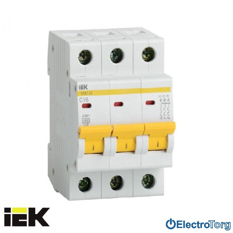 Автоматический выключатель ВА47-29 3P 4,5кА D 2A ИЭК(IEK)