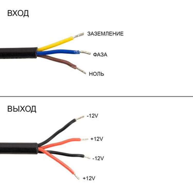 Тип підключення блоку живлення здійснюється таким чином: дроти з'єднуються методом пайки і укладаються в герметичну коробку, а також можна використовувати метод застосування герметичного клемника або термоусадочної трубки. Метод пайки забезпечує довговічний і надійний контакт з великим періодом роботи електропроводки, а також зниженням температури в місцях підключення. Клемники підходять для з'єднання проводів з різних металів, дозволяють зменшити час при монтажі електроводкі, зручні в експлуатації. Підключення блоку живлення відбувається за допомогою 3 проводів на 220V (фаза, нуль, заземлення), а підключення споживача - за допомогою 4 проводів на 12V (+ +/- -) для подачі напруги, наприклад на світлодіодну стрічку.