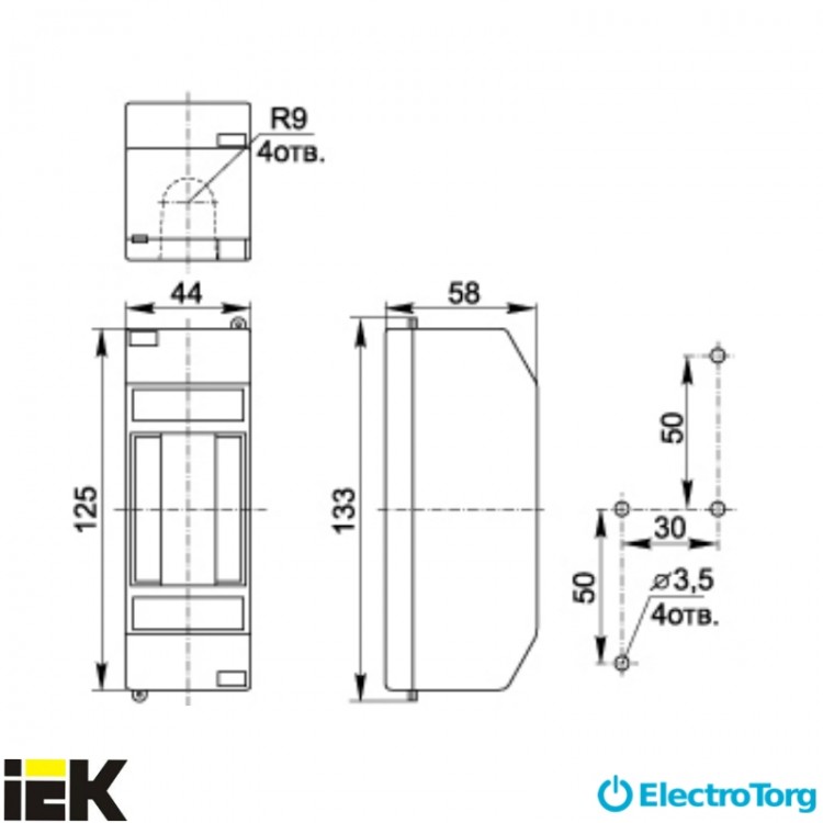 Бокс КМПн 1/2 на 2 модуля навесной 125х44х58 IP20 ИЭК (IEK)