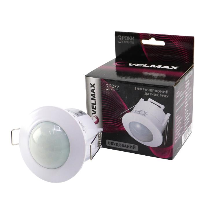 Область применения:Датчик движения TM VELMAX - электронное устройство, которое автоматически включает и выключает освещение в помещении или на улице.Для обнаружения человека в поле действия датчика движения используется инфракрасная технология. Инфракрасный датчик реагирует на тепло, которое излучает тело человека. Для обеспечения корректной работы, перед первым использованием датчик программируется по нескольким параметрам, таким как время работы и чувствительность.ПРЕИМУЩЕСТВА:современный и эргономичный дизайн;широкий диапазон уровня освещенности и регулятора часов;автоматизм;удобство использования;безопасность;экономия энергии.ФУНКЦИИ ИНФРАКРАСНОГО ДАТЧИКА ДВИЖЕНИЯ:режим Sun (max) - непрерывная работа в течение суток;режим Moon - работа в темное время, при чувствительности окружающего освещения