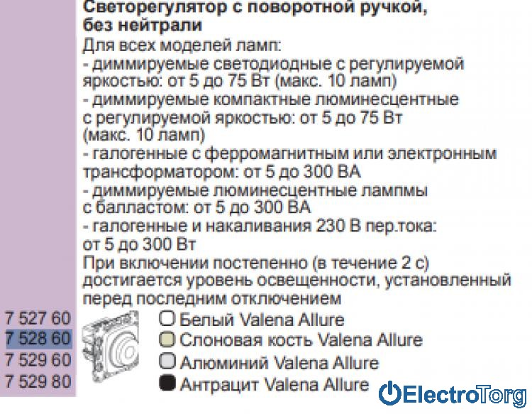 - Класс электрофурнитуры Диммер(светорегулятор)