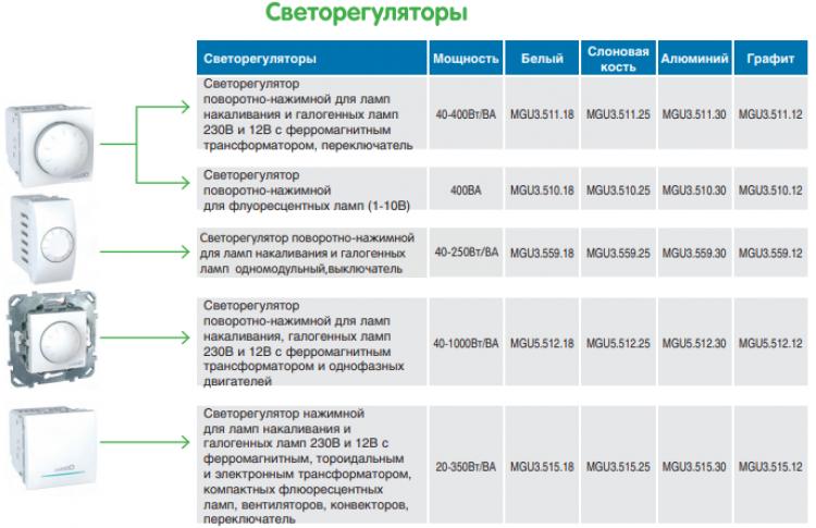 - Класс электрофурнитуры Диммер(светорегулятор)
