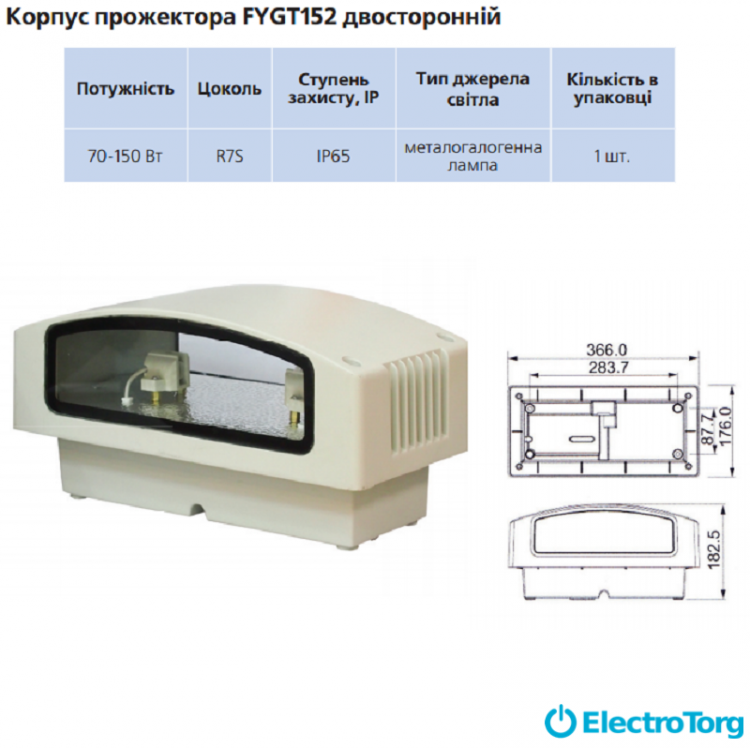 Корпус прожектора FYGT152 70-150Вт R7S двухсторонний Delux