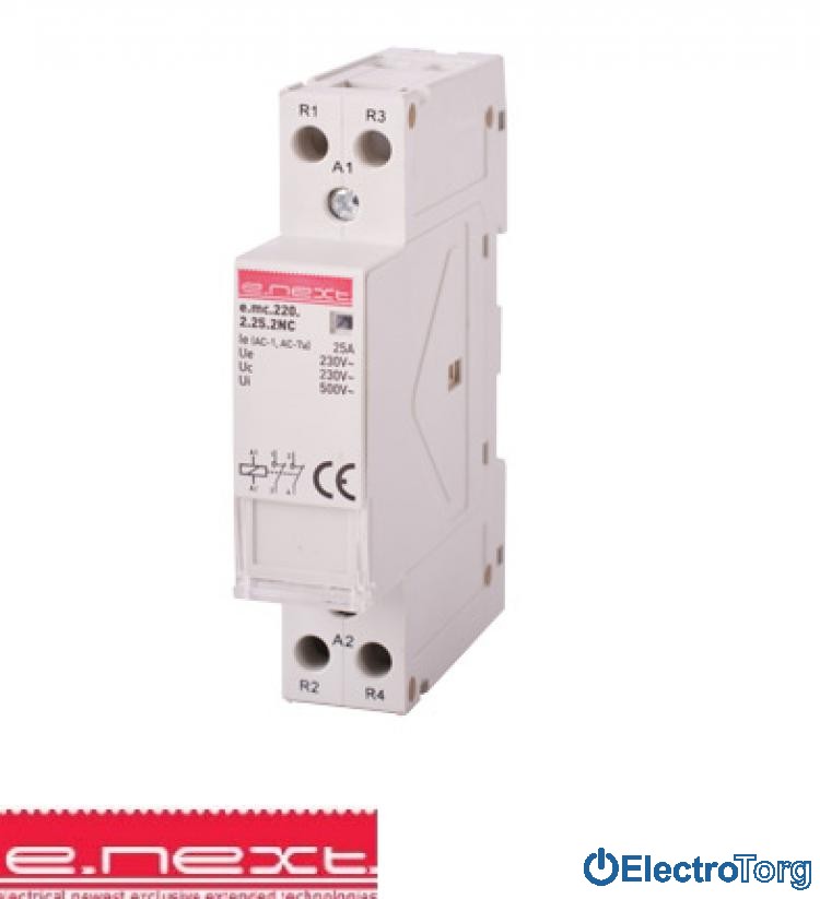 Модульный контактор e.mc.220.2.25.2NC, 2р, 25А, 2NC, 220В E.NEXT(Енекст)
