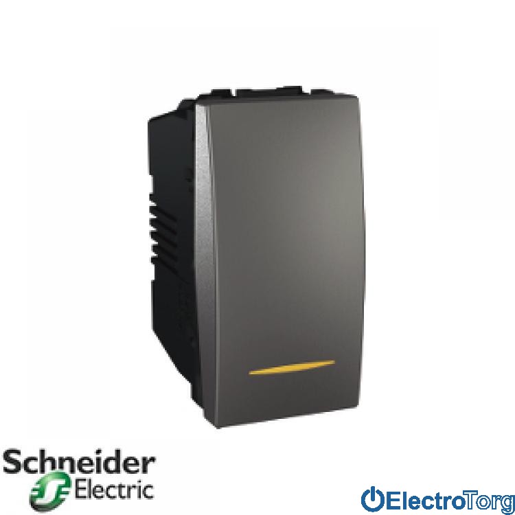 Переключатель (проходной выключатель) 1-клавишный с индикатором 1 мод. 16AX графитовый Unica Schneider