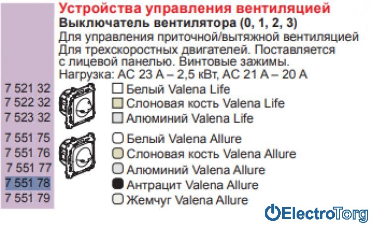 Механизм переключателя скорости вентилятора антрацитовый Valena ALLURE Legrand