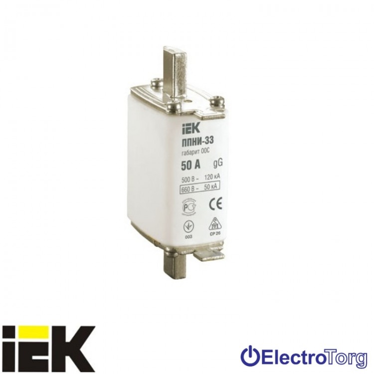 Плавкая вставка предохранителя ППНИ-33 габарит 00 50А ИЭК