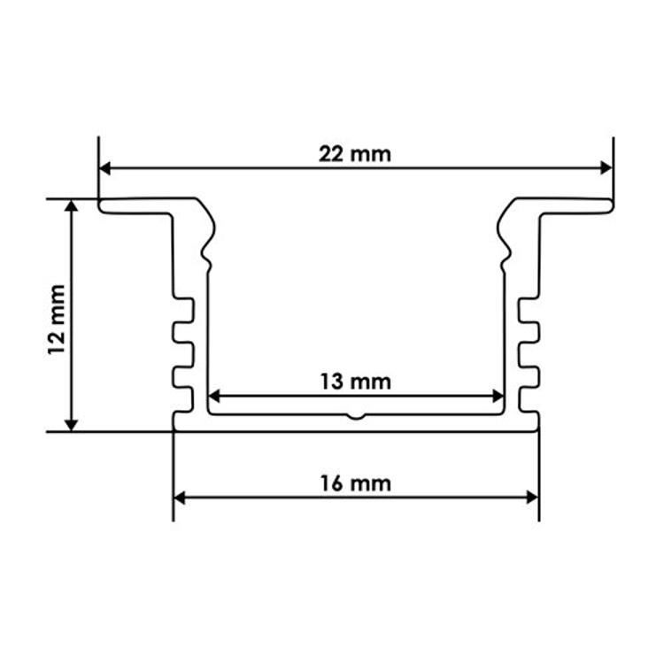Профіль LED LPV-12 виготовлений з анодованого алюмінію і призначений для більш точної концентрації світлового потоку, є модернізованою версією профілю LED LP-12, призначений для врізки профілю в основу. Завдяки наявності бічних планок добре маскує паз після монтажу. Унікальна конструкція замку забезпечує пиловологозахист системи за рахунок щільного прилягання розсіювача до профілю. Товщина стінок більше 1 мм і наявність додаткових ребер гарантує високу міцність готового виробу а також забезпечує необхідний тепловідвід від світлодіодної стрічки, тим самим значно збільшуючи термін її служби.