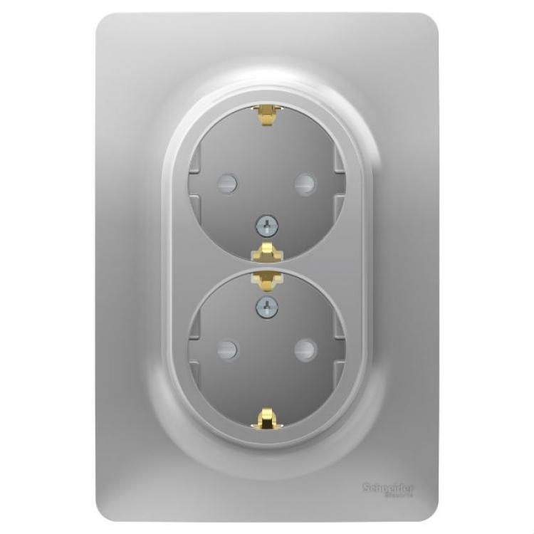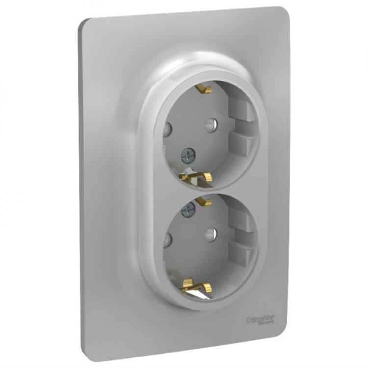 Розетка двойная с з/к шторки винтовой зажим алюминий Unica New Schneider Electric (Шнайдер Электрик)
