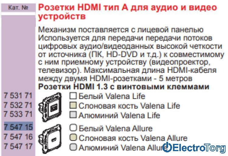 Механизм розетки HDMI для передачи аудио/видеосигнала белый Valena ALLURE Legrand