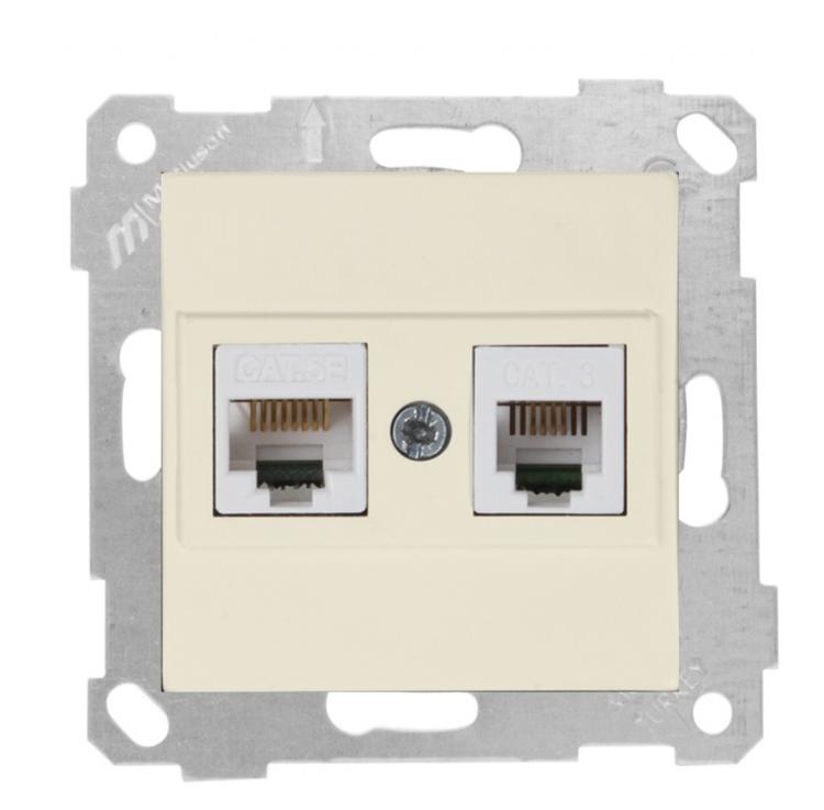 Розетка компьютерная телефонная RJ12+Cat5e RITA MUTLUSAN кремовая