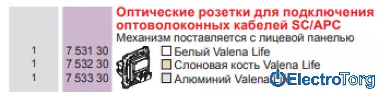 Механизм розетки оптической 2SC APC белый Valena LIFE Legrand
