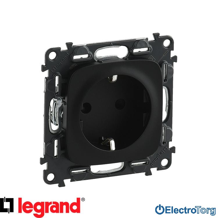 Механизм розетки с заземлением и защитными шторками 16AX винтовые клеммы антрацитовый Valena ALLURE Legrand