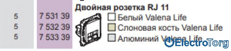 Механизм розетки телефонной двойной RJ11 белый Valena LIFE Legrand