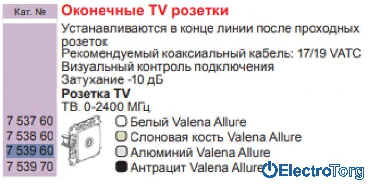 - Класс электрофурнитуры Телевизионная розетка