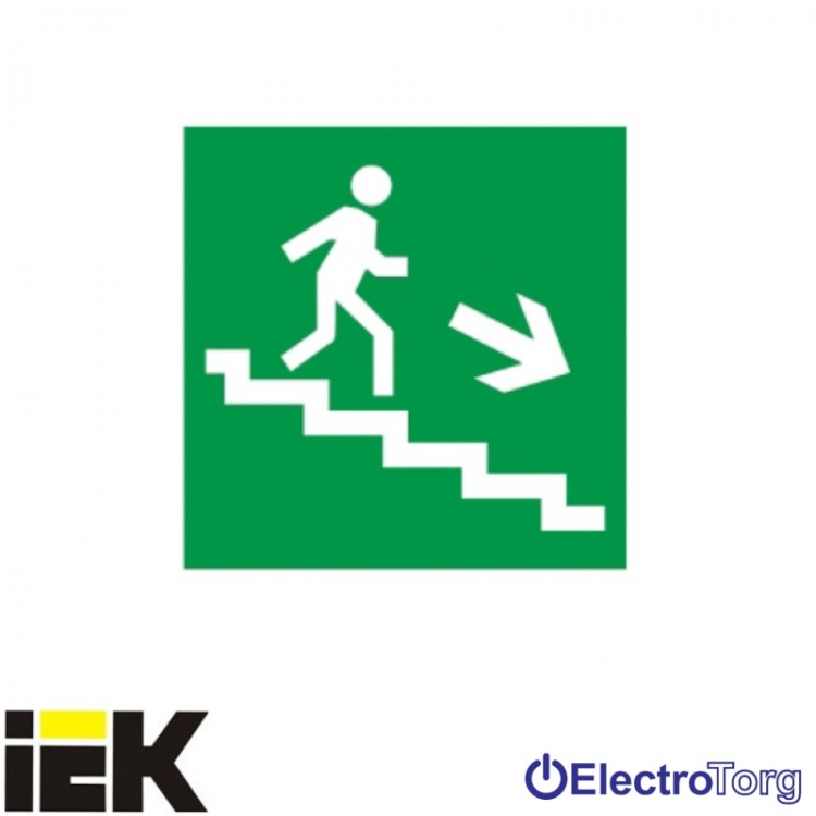 Самоклеющая этика 150х150мм "Направления к эвакуационному выходу по лестнице направо вниз" ИЭК