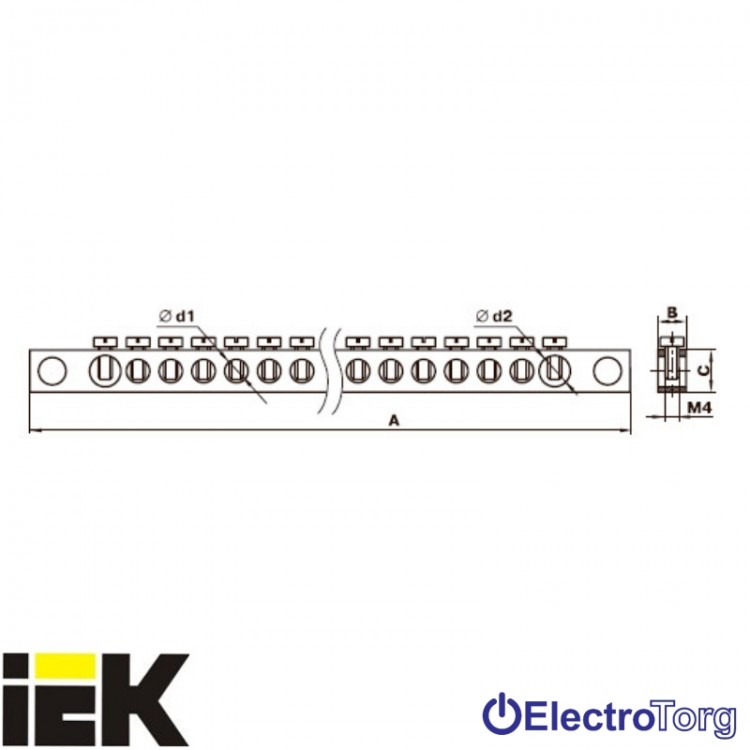Шина PEN "земля-ноль" 8х12мм 4/1 4группы/креп по центру ИЭК