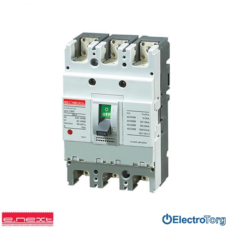 Силовой автоматический выключатель e.industrial.ukm.100S.100, 3р, 100А, e-next