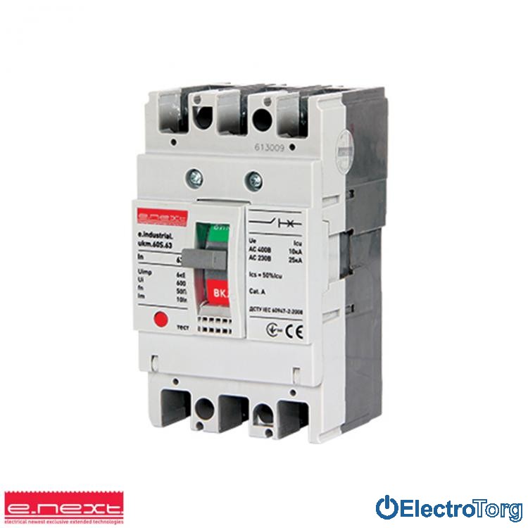 Силовой автоматический выключатель e.industrial.ukm.60S.50, 3р, 50А e-next