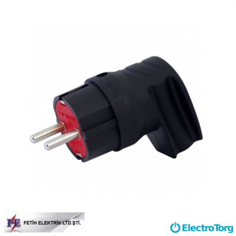 Вилка каучуковая угловая с заземлением и держателем Fetih