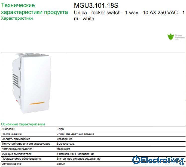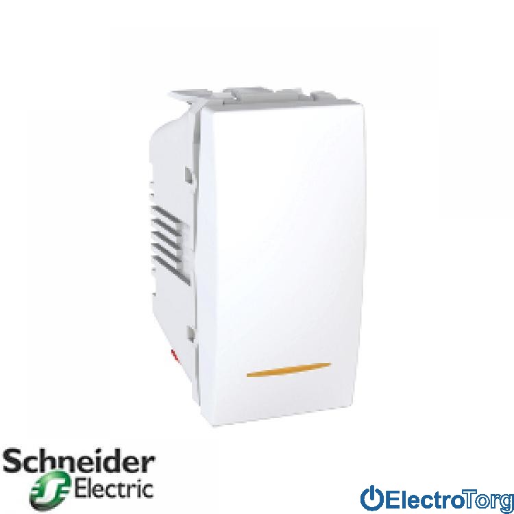 Выключатель 1-клавишный с индикатором 10AX белый Unica Schneider