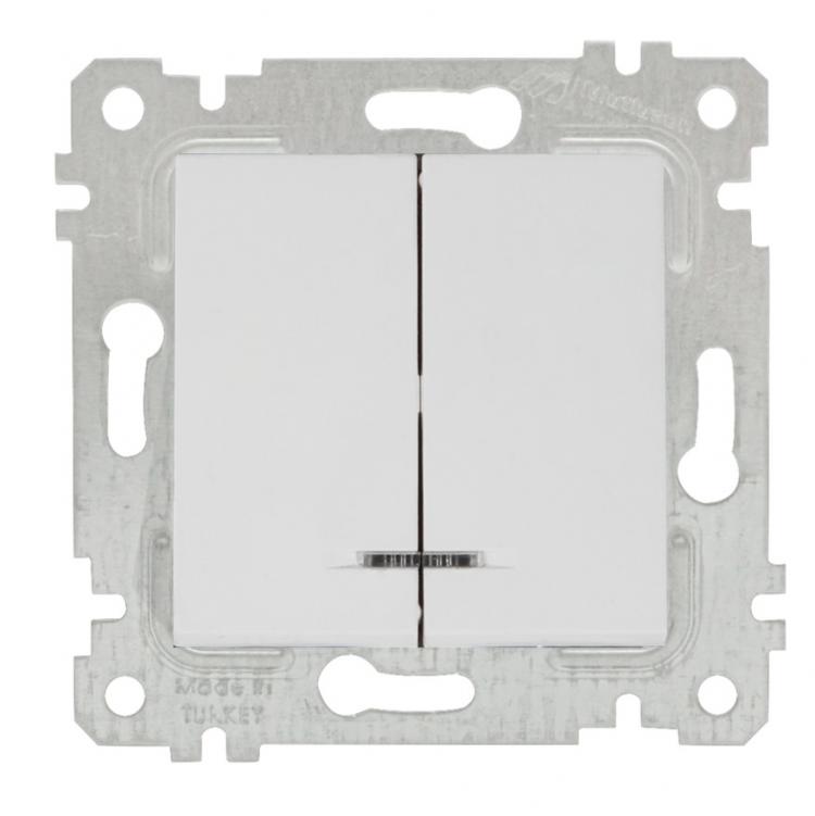 Выключатель c подсветкой двухклавишный коммутатор 10 А MUTLUSAN RITA белый